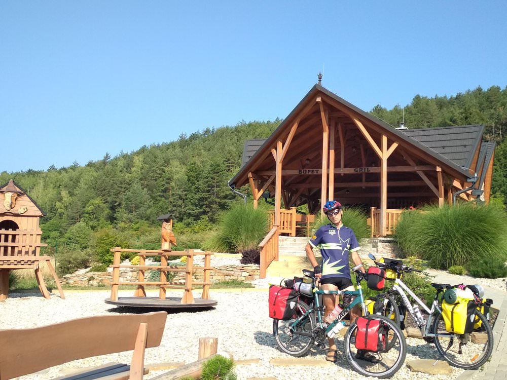 Sreča je bila itak na najini strani, saj, kot pravijo, sreča spremlja pogumne ;-). Po poti, prek booking.com, najdem in rezerviram majhen penzionček za nočitev. Petru sicer ne omenim slik, ki sem jih na bookingu videla in tako hitiva, do Trenčina. Oblaki postajajo vse nižji in temnejši, midva pa potiskava pedala in upava, da prehitiva napovedano nevihto. Dvakratno pranje je bilo za ta dan dovolj. S pomočjo Google zemljevida prideva do penziona, odneseva v sobo stvari…. in ulije se kot iz škafa. Če tokrat ni bila sreča na najini strani, pa res ne vem, kdaj bi še lahko bila. Ubežala sva tretjemu nalivu. V penzionu naju čaka topla kopel (priznam, da mi je misel na banjo, ki sem jo videla ob rezervaciji na bookingu pomagala pri hitrejšem potiskanju pedal ;-)) in pranje umazane opreme. Ko sva s sebe sprala vso umazanijo, pa še domača večerja v bližnjem lokalu.